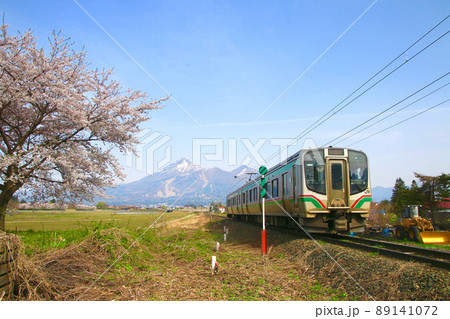 磐越西線と桜(福島県・猪苗代町)