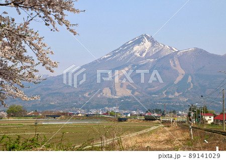 磐梯山と桜(福島県・猪苗代町)
