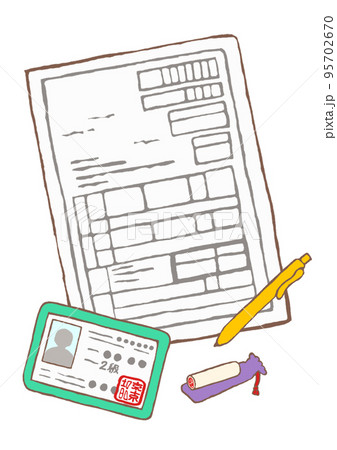 水彩 手描き 持ち物イメージ 申請書1枚 印鑑 写真