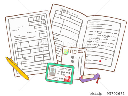 水彩 手描き 福祉 持ち物イメージ 申請書 手帳 印鑑