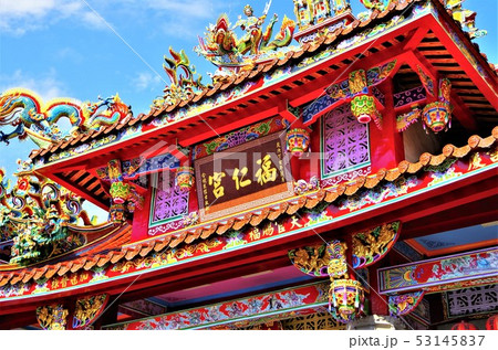 青空に映える色彩豊かな道教寺院・イメージ (福仁宮)