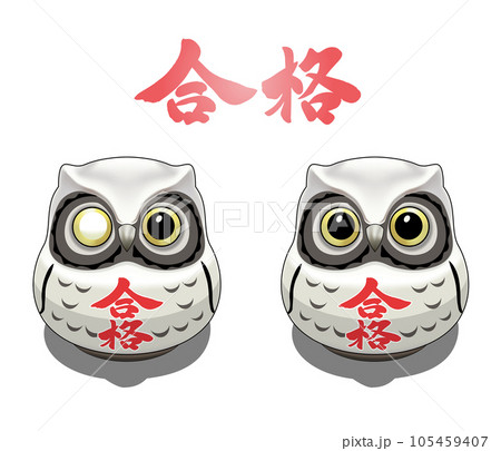 素材-合格だるまフクロウ(白)