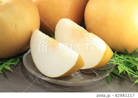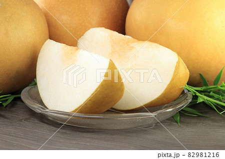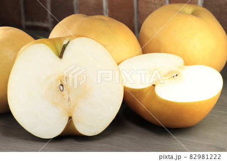 秋が旬の千葉県産新高梨(3玉のアップ)