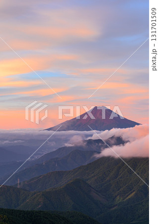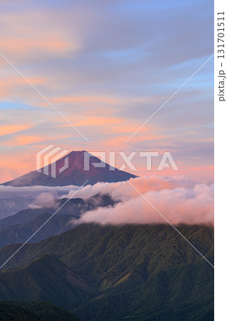 (山梨県)夏の赤富士と山並みの絶景