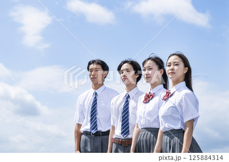 中学生 高校生 男女 集合写真 カメラ目線 笑顔