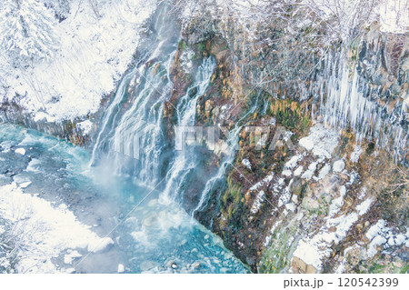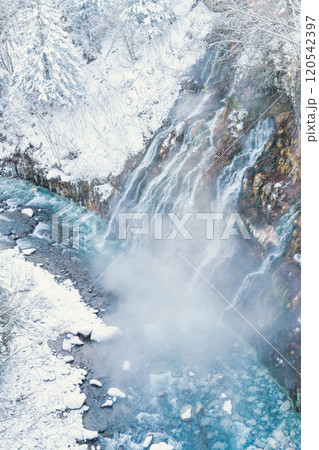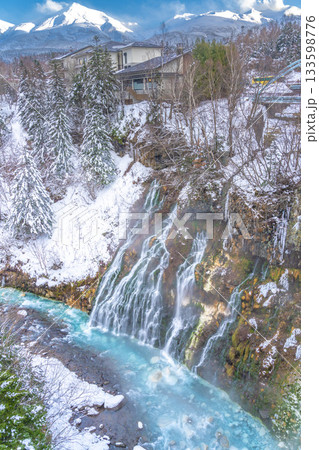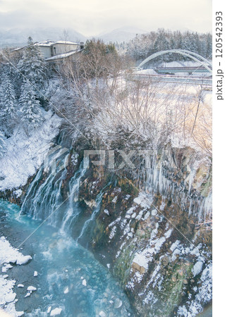 十勝連邦を望む冬の白鬚の滝