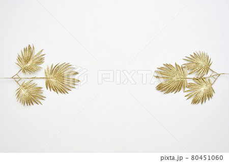 Decorative golden leaves on red textile backdrop