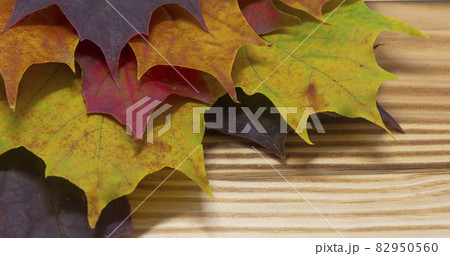 Autumn leaves on wood
