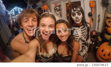 ハロウィンパーティーを楽しむ仮装した若者たち