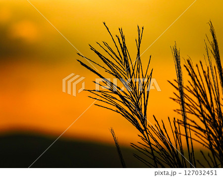 夕暮れの静かに揺れるすすきの穂