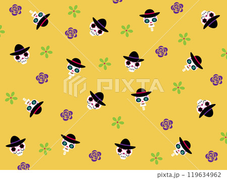 かわいいメキシコの骸骨とお花の背景・壁紙