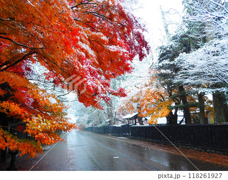 紅葉と雪景色を同時に堪能できる奇跡、秋の終わりと冬の訪れ