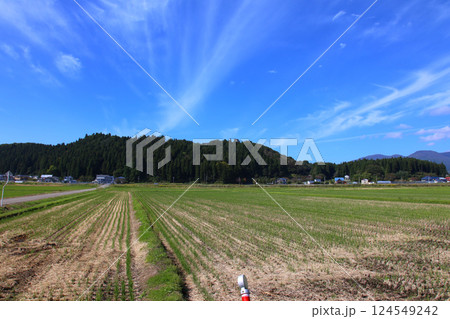 秋、磐梯山と白い筋状の雲が青空に印象的で綺麗だ。