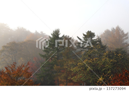 裏磐梯五色沼 自然探勝路 カラマツの黄葉