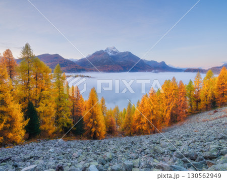 he Engadin valley, Switzerland. Nature. Autumn landscape in the Switzerland.