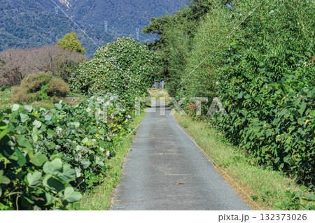 マキノ町知内川沿いのサイクリングロード 蔓草のトンネル 滋賀県高島市