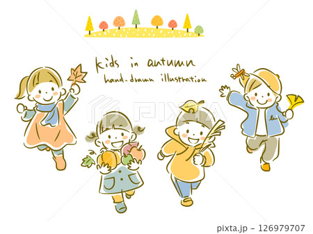 秋を楽しむ子供たち シンプルでかわいい水彩風手描きイラスト