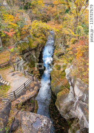 磊々峡 秋保温泉街 秋保大滝の下流に位置する秋保石の大地を侵食した奇岩が並ぶ自然の峡谷