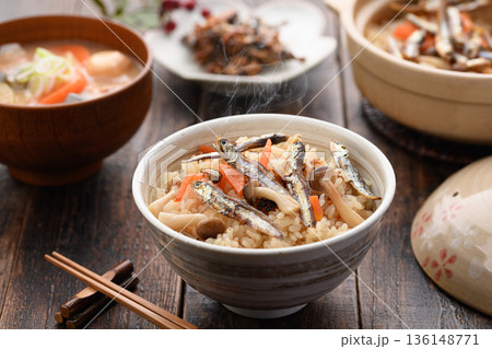 イリコ入り炊き込みご飯と和定食|湯気立つ出来立て家庭料理・素朴で滋味深い和食