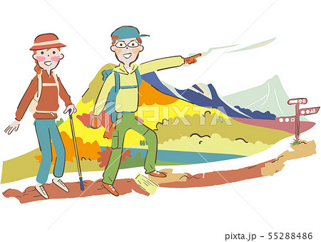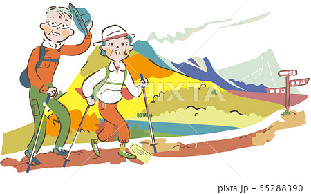 登山を楽しむシニアカップル 紅葉 秋 イラスト
