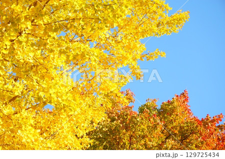 秋の紅葉 赤と黄色に色づいたもみじ