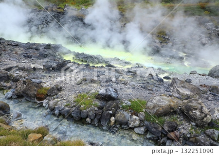 日本百名山 草紅葉映える秋の八幡平 八幡沼と池塘