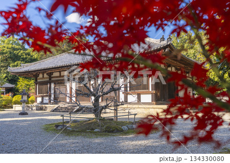 秋篠寺 本堂 紅葉の季節