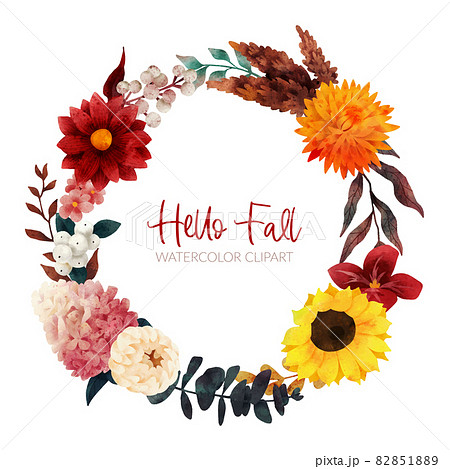 Fall floral wreath, autumn flowers and leaves