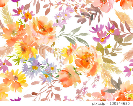 水彩の手書きの秋の草花のシームレスパターン。秋の花柄。ボタニカルテキスタイルデザイン。