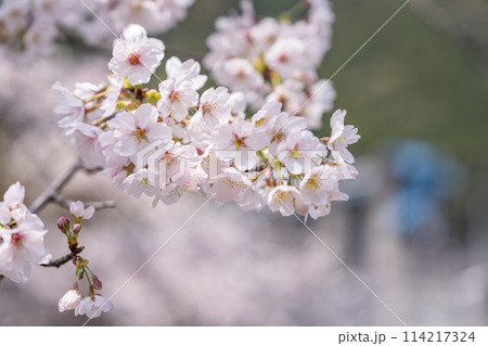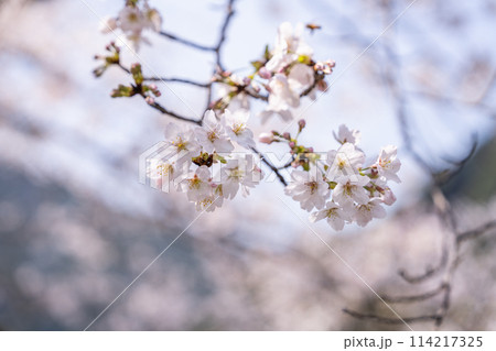 春の晴れた日の秋葉ダムの満開に咲いた桜の花(静岡県)