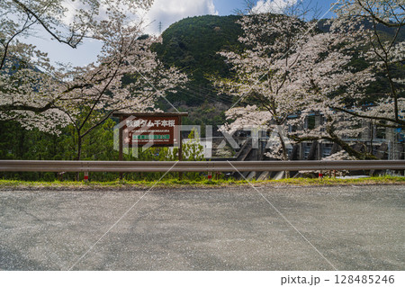 静岡県浜松市天竜区龍山町大嶺 桜と秋葉ダムの風景