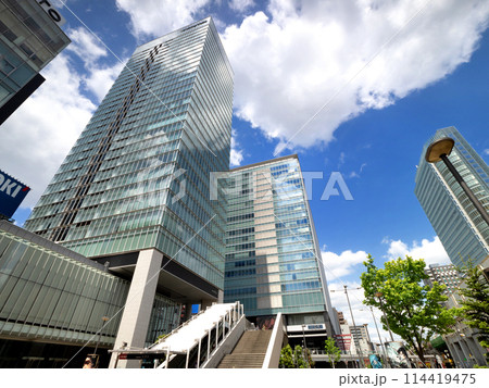 秋葉原駅電気街口の西側広場と高層ビル街 東京都