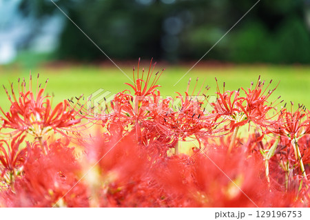秋雨上がりの光芒に映える美しく開花した彼岸花 彼岸花観光スポット 伊坂区彼岸花の里