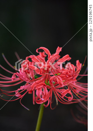 秋の小雨に濡れてひっそりと咲く真紅の曼殊沙華