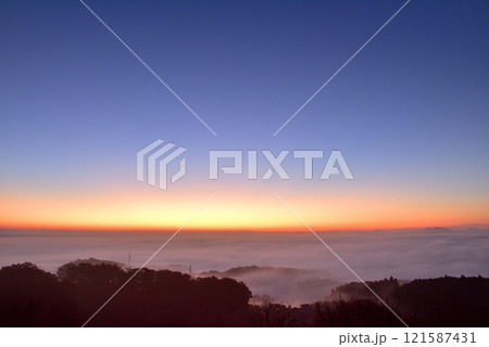 茨城県笠間市 愛宕山から望む秋の日の出シーン