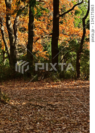 秋の公園 色づく雑木林