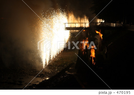 たいまつと仕掛け花火