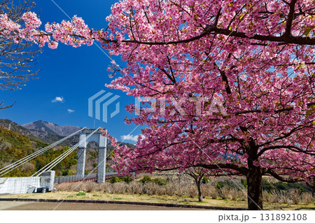 関東・戸川公園・梅と桜、春のお花見が楽しめる公園のランドマーク、風の吊り橋・神奈川県秦野市(1)