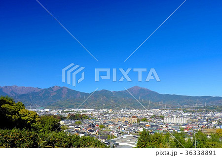 秦野市の風景 弘法山公園から望む秦野市街と富士山