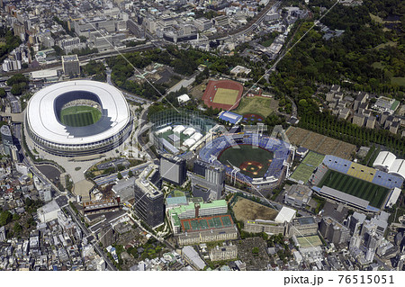 秩父宮ラグビー場や神宮球場付近を空撮