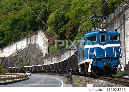親鼻鉄橋を行く鉱石貨物列車 秩父鉄道デキ100形102号機電気機関車