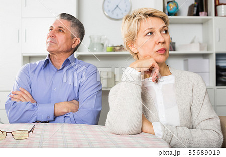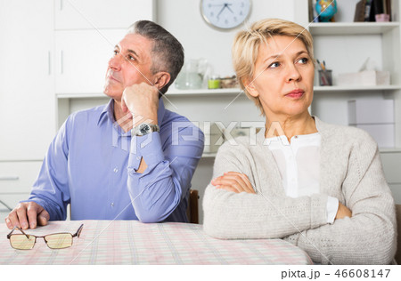 Mature man and woman are offended at each other