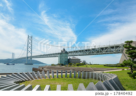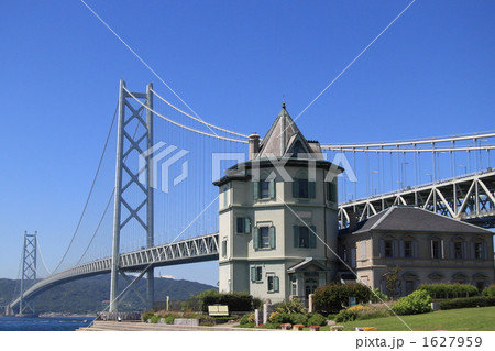 晴天の明石海峡大橋と孫文記念館(移情閣)