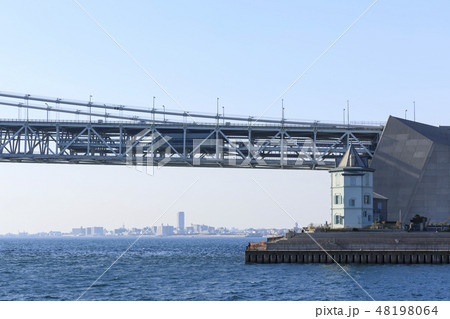 兵庫県神戸市 冬ばれの明石海峡大橋と孫文記念館