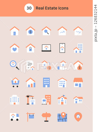 Real estate vector flat icons set.