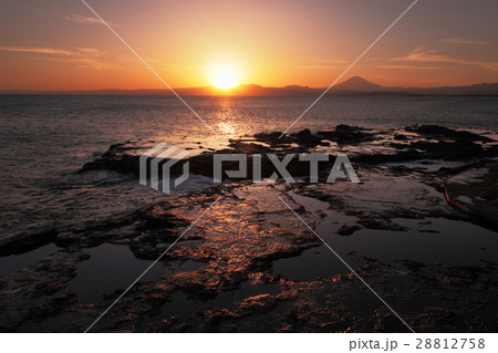 江ノ島岩屋近くの稚児ヶ淵(ちごがふち)から見る日没の風景