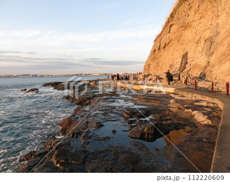 夕日に染まる江の島の稚児ヶ淵
