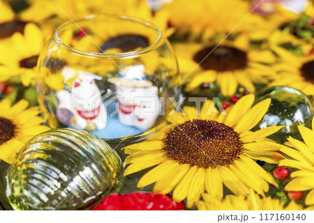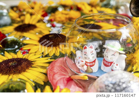 竹駒神社の手水舎 ひまわりの花手水 宮城県岩沼市