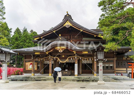 雨の竹駒神社と参拝客 宮城県岩沼市