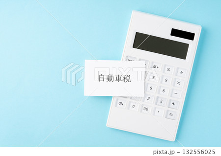 水色背景に自動車税の文字と電卓